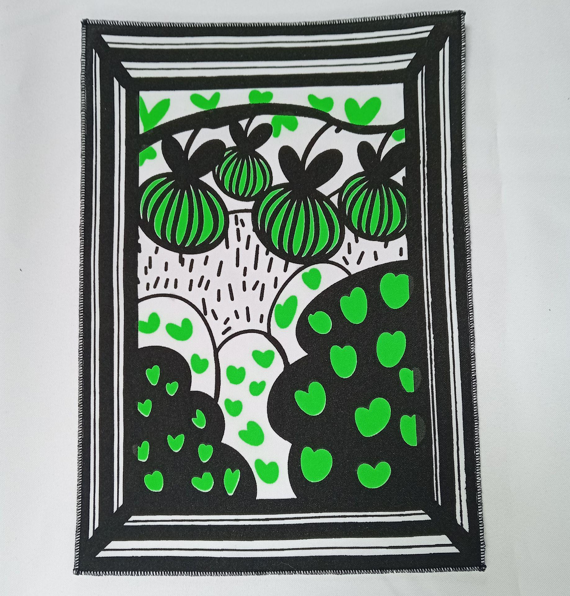 Patch fait-main et sérigraphié en 4 couleurs sur du tissu noir recyclé35,00€ TTC